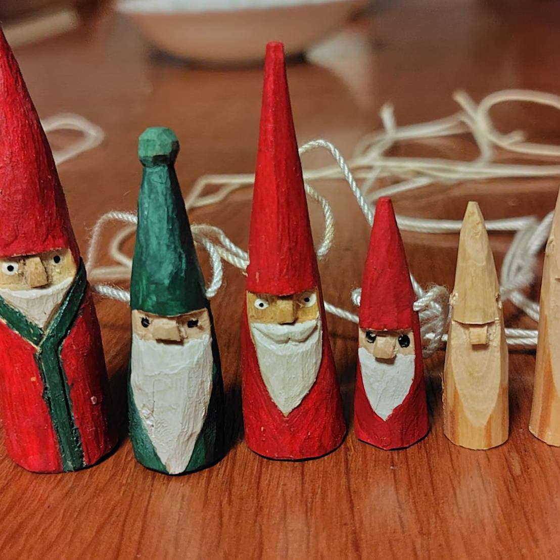 グリーンウッド(生木)で作るクリスマス飾り(h)SGクラフト 高さ30cmほどの卓上サイズのスパイラルツリーと、オーナメントもしくはペンダントにできるミニトムテを作ります。小学校高学年〜大人材料費:1000円 SGクラフト普段は生木のスプーンや器を削っています。 WORKS